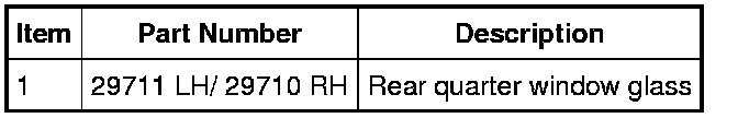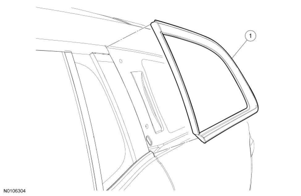 NOTICE: Before positioning the rear quarter glass, open vehicle windows to prevent the air pressure of closing doors from affecting the urethane adhesive bond.