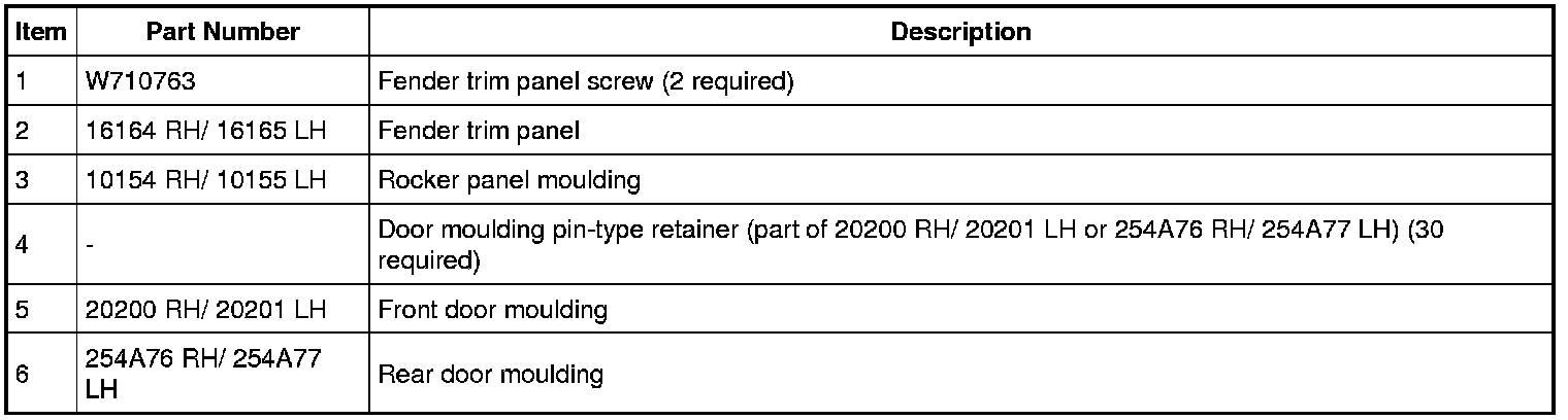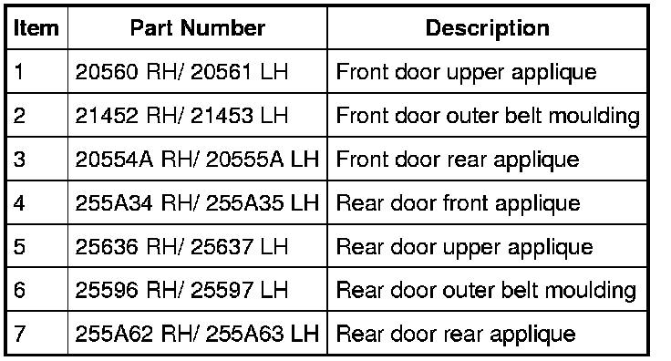 Body Side Upper Mouldings and Appliques
