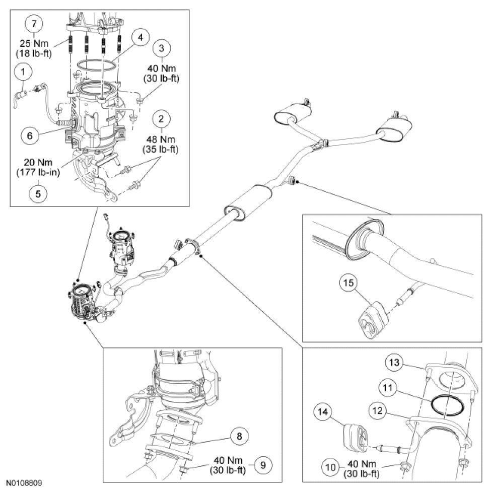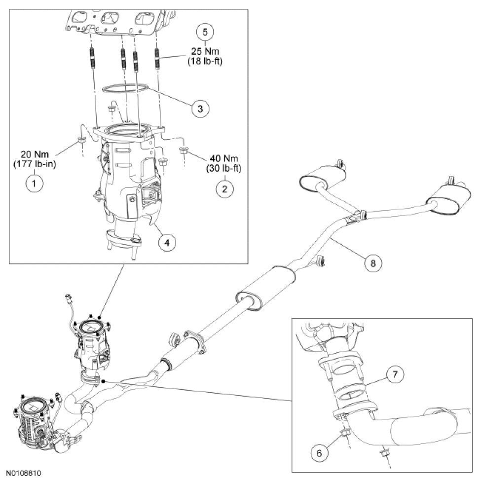 3.5L Gasoline Turbocharged Direct Injection (GTDI) LH and RH Catalytic Converters and Exhaust Flexible Pipes