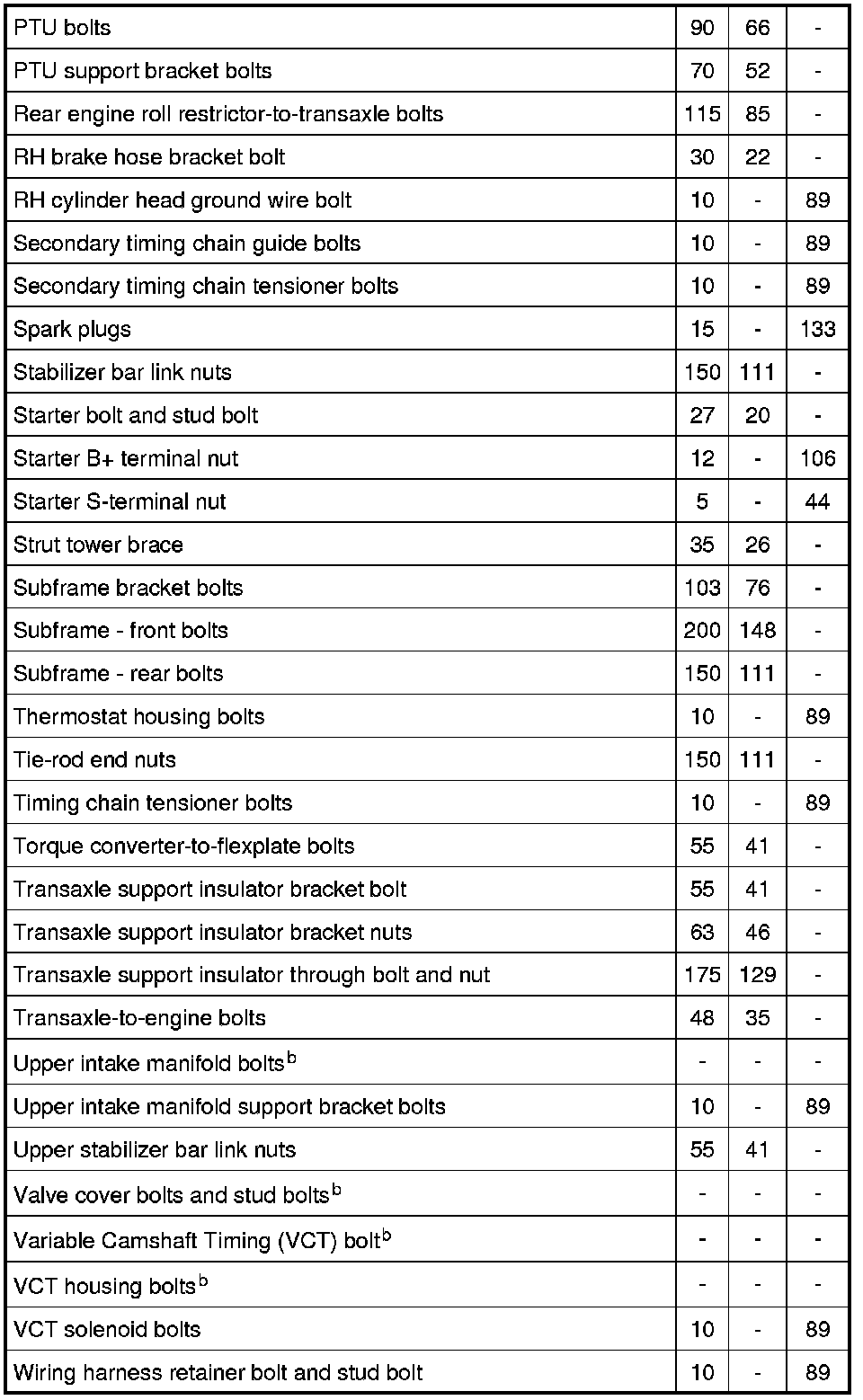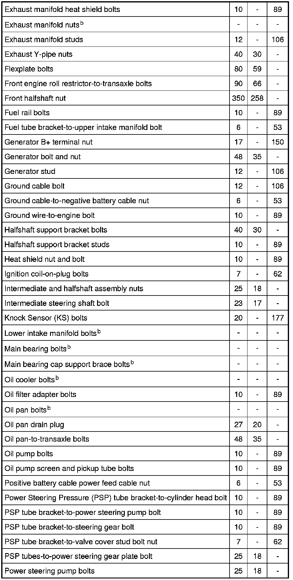 Torque Specifications