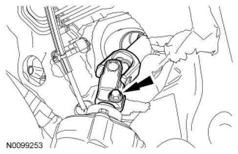 8. NOTICE: Do not allow the intermediate shaft to rotate while it is disconnected from the gear or damage to the clockspring may occur. If there is evidence that the intermediate shaft has rotated, the clockspring must be removed and recentered. For additional information, refer to Restraint Systems.