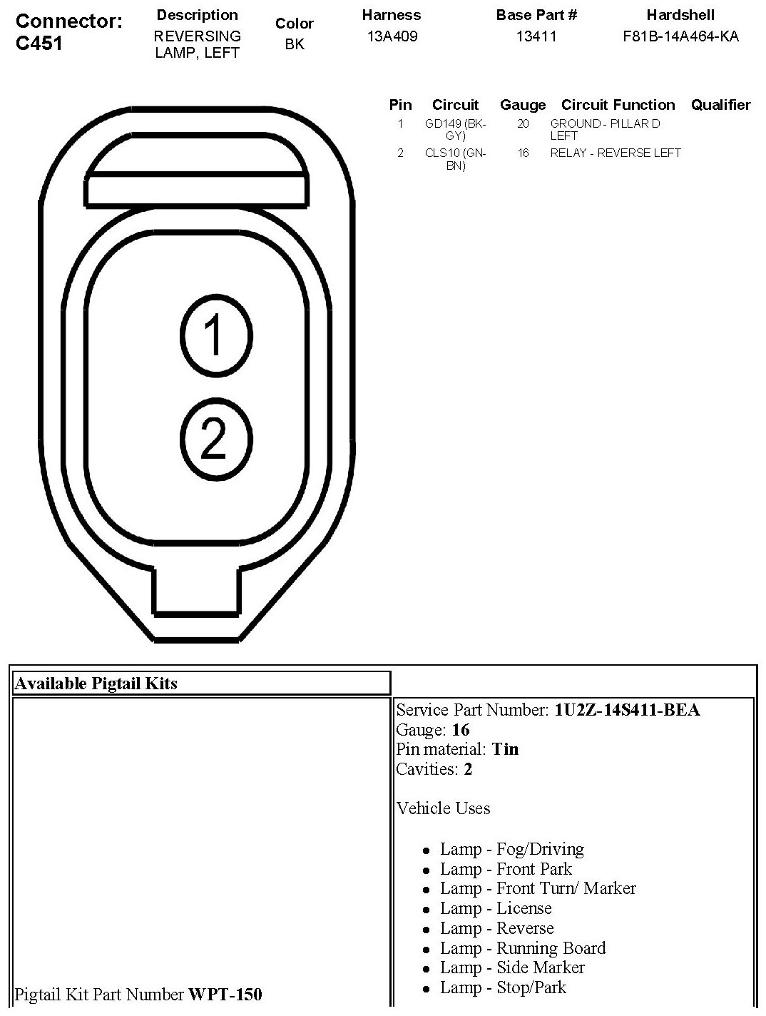 Reversing Lamp, Left