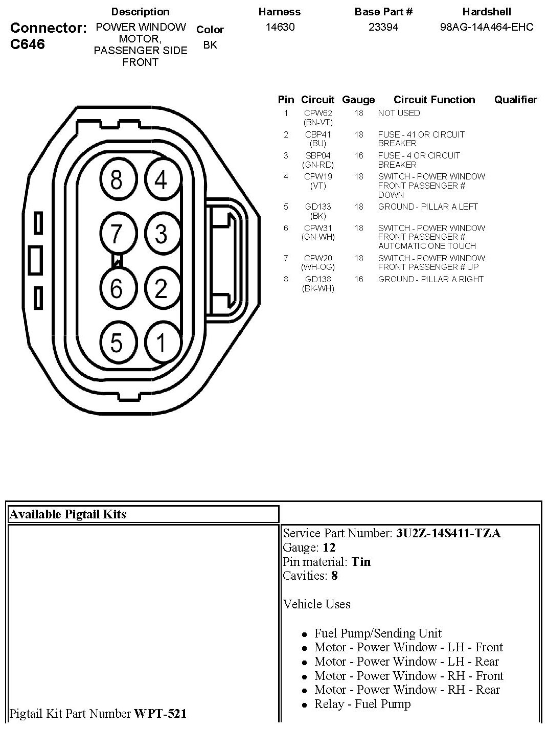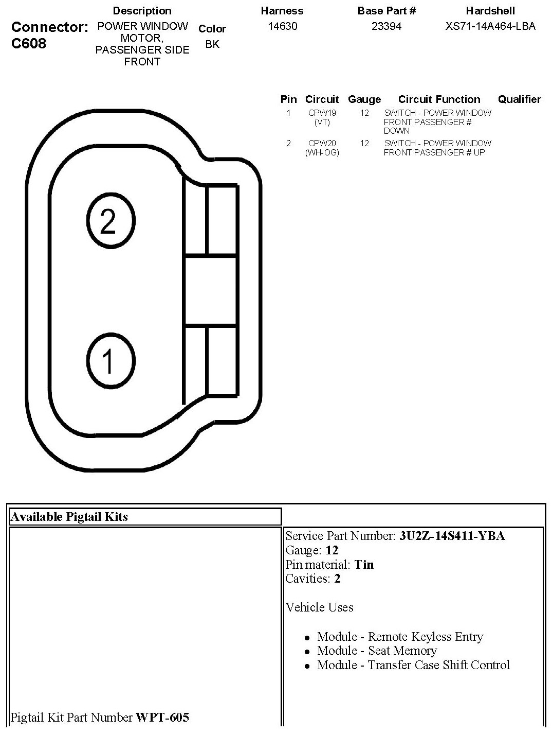 Power Window Motor, Passenger Side Front