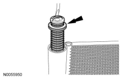 1. Push the receiver/drier plug towards the top of the condenser and remove the snap ring.