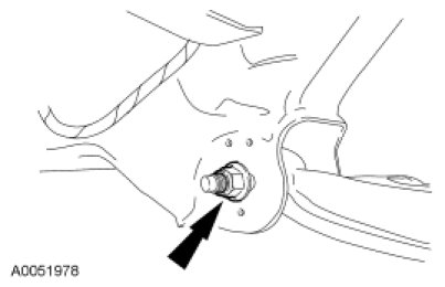 9. With the weight of the vehicle resting on the wheel and tire assemblies, hold the front cam bolt and tighten the nut to 350 Nm (258 lb-ft).