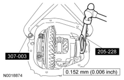 To establish differential bearing preload, using the Differential Shim Installer increase both the left and right differential bearing shim thickness by 0.152 mm (0.006 in).