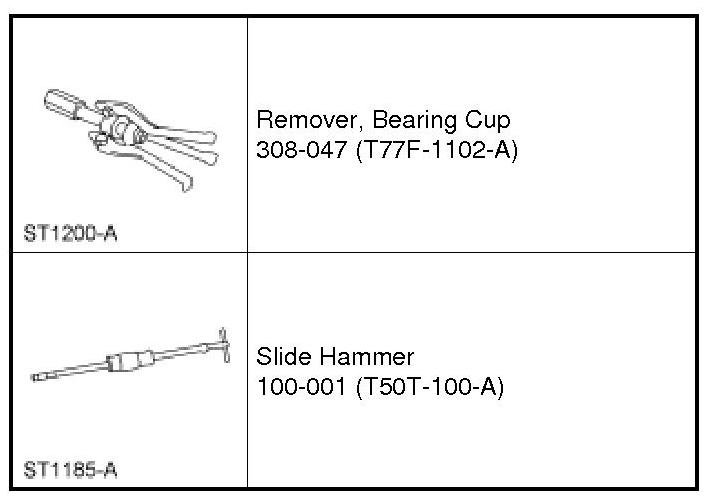 11. Using the Bearing Cup Remover with the Slide Hammer, remove the front output shaft rear bearing.