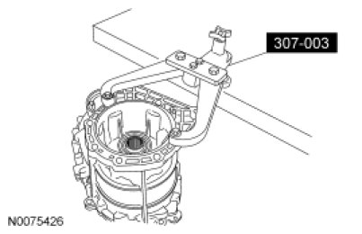 6. Install the case to the Transmission Holding Fixture. Secure the case and the Transmission Holding Fixture to the work bench.