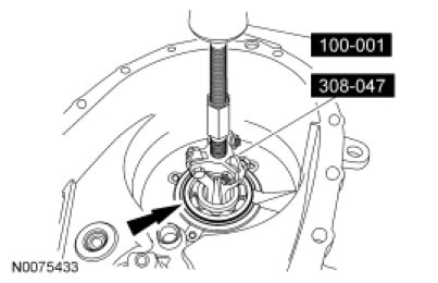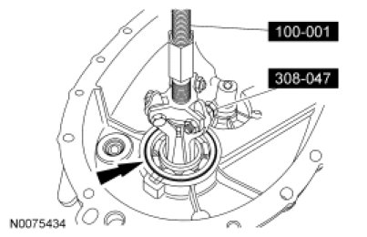 3. Using a suitable press and the Output Shaft Front Bearing Installer with the Handle, install the front input shaft bearing.
