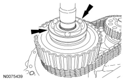 15. NOTICE: When installing the clutch assembly, do not separate the clutch pack assembly. The thrust washer in the lower clutch pack uses tabs to hold it in place. If the thrust washer is not in place, a transfer case clearance problem will occur.