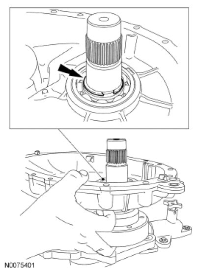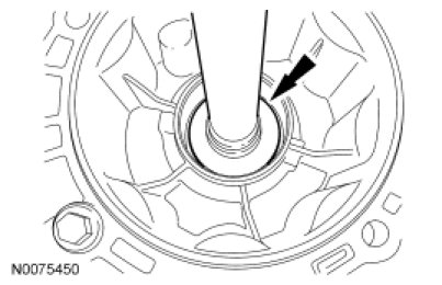 4. Using a suitable tool, remove and discard the rear output shaft seal.