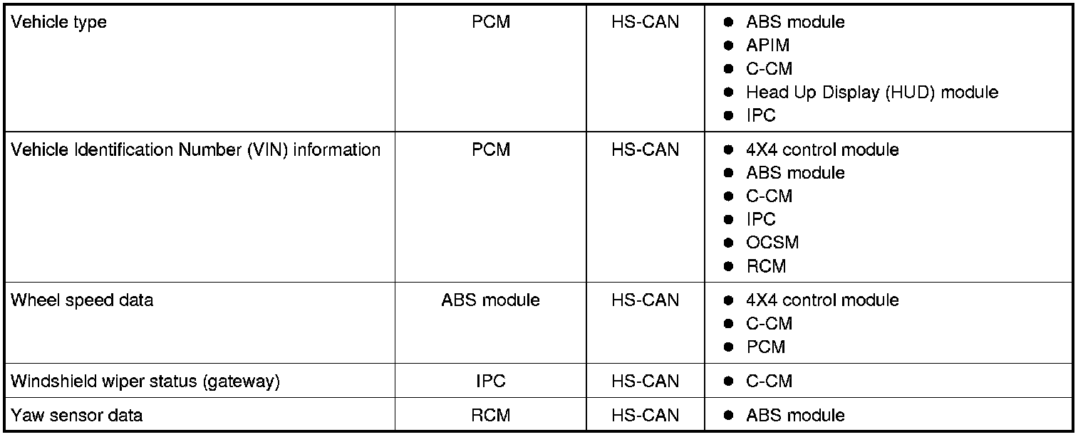 The following adaptive cruise control system components communicate via the HS-CAN and Medium Speed Controller Area Network (MS-CAN):