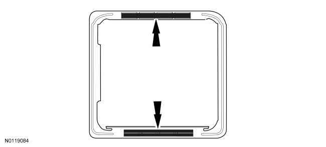 Apply the HCM-2 mounting bracket onto the windshield making sure that the inner edges of the bracket are aligned to the locator lines as shown.