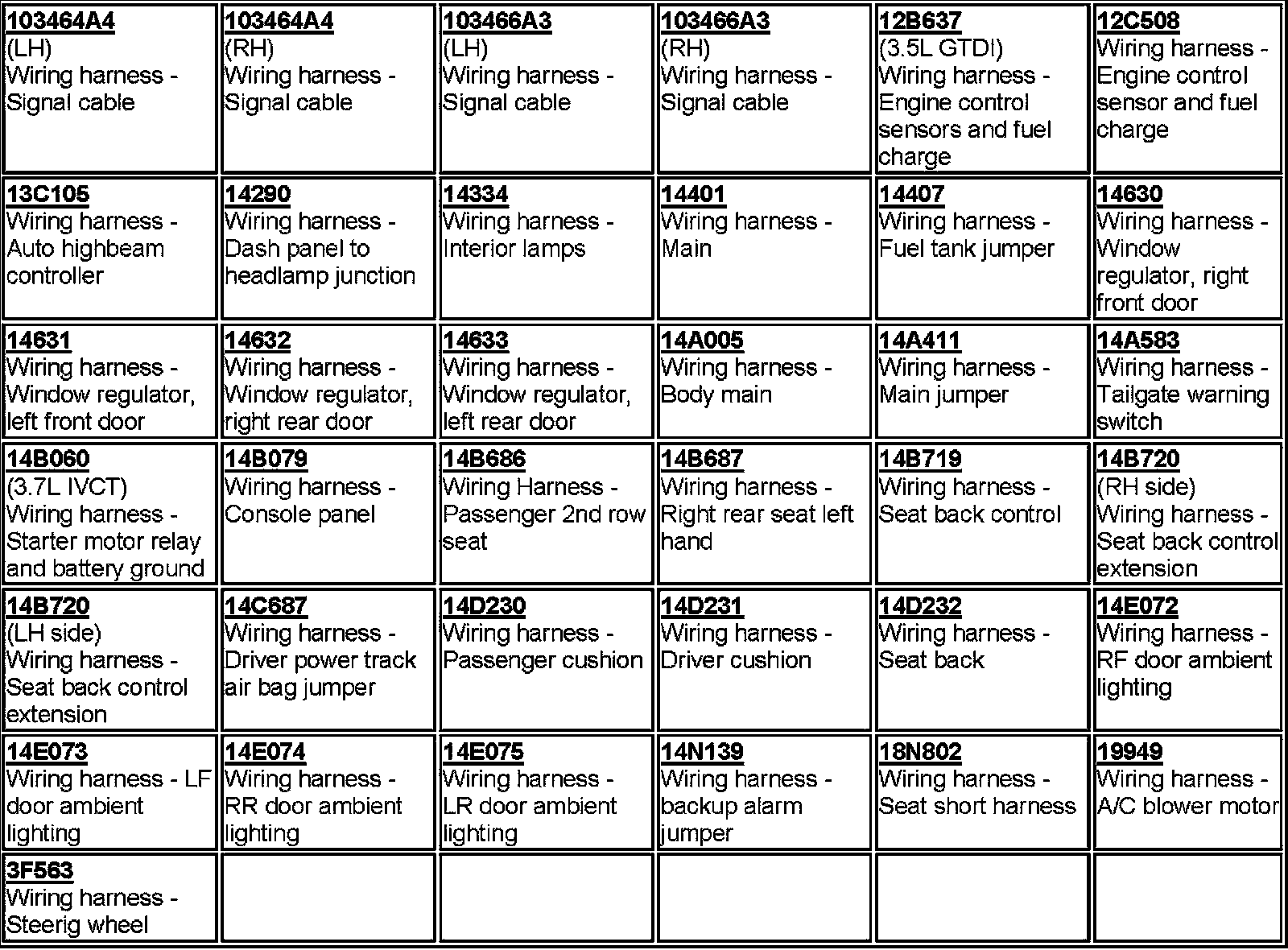 Harnesses Index