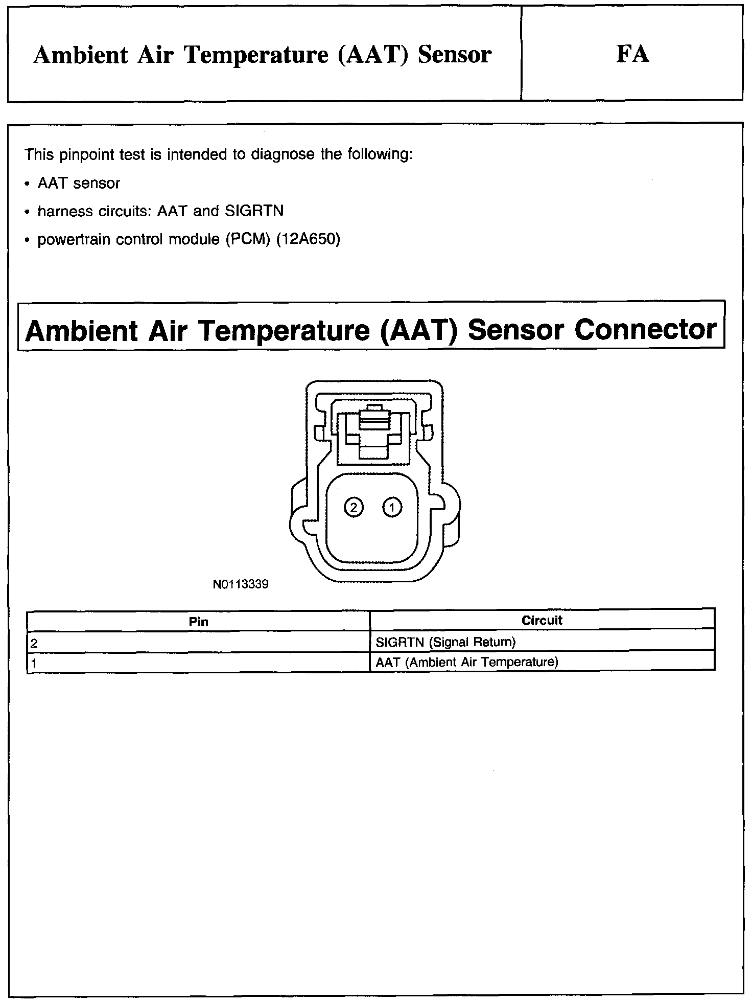 PINPOINT TEST FA: AMBIENT AIR TEMPERATURE (AAT) SENSOR