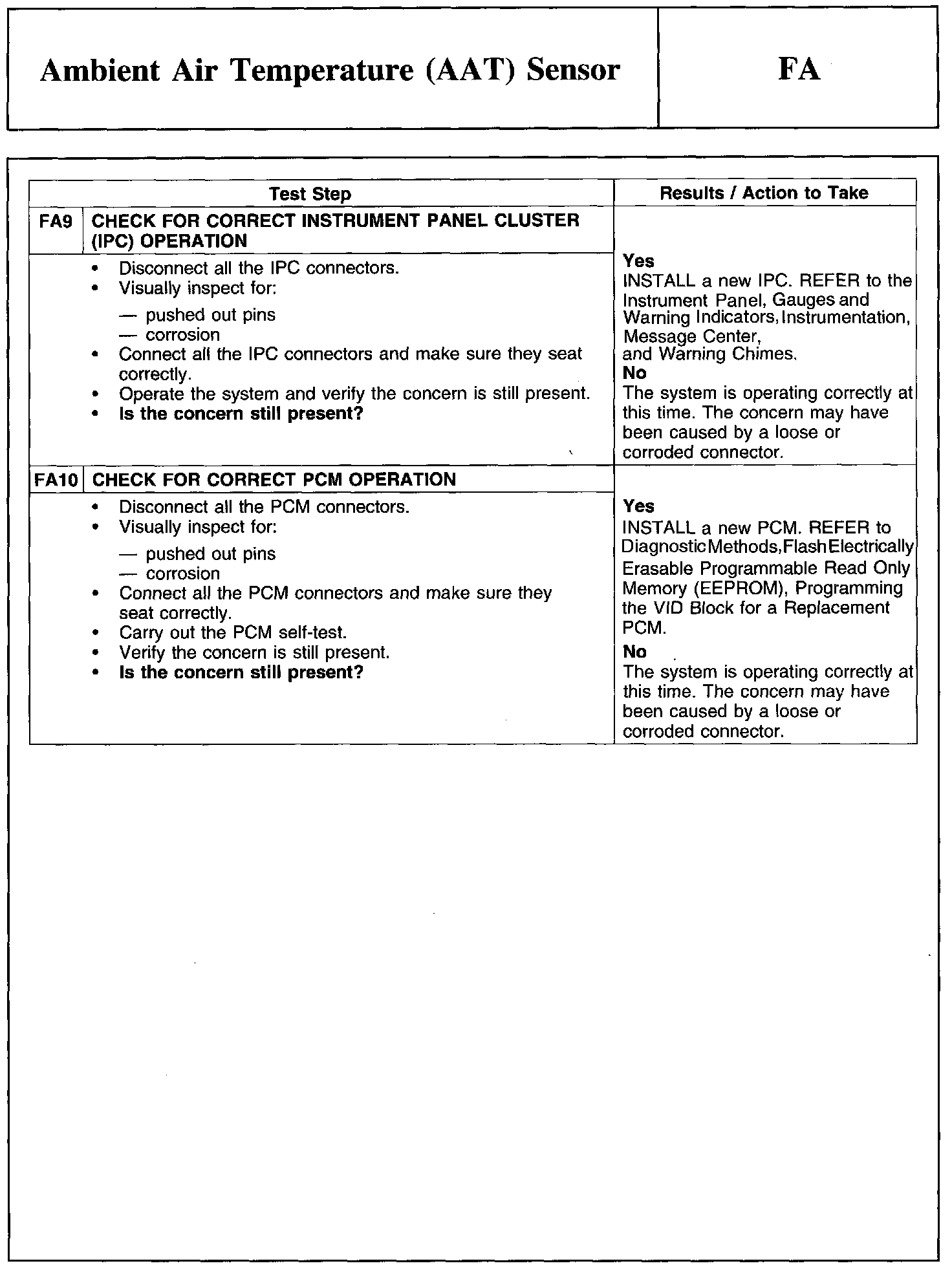 Test FA: Ambient Air Temperature (AAT) Sensor