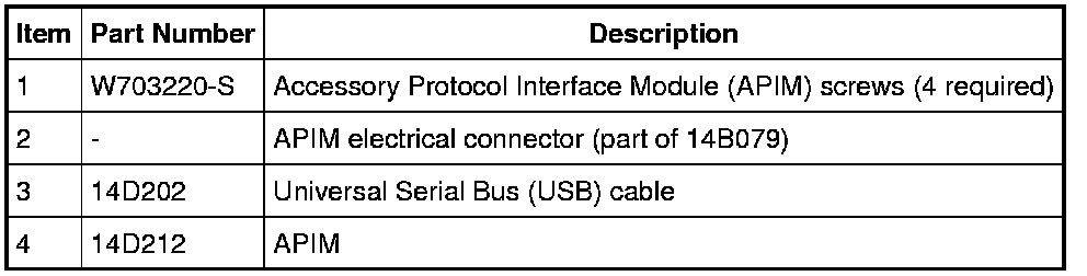 1. NOTE: It is necessary to record the current Accessory Protocol Interface Module (APIM) software and hardware level when a new APIM is being installed to make sure that the new component is the same version as the component being replaced.