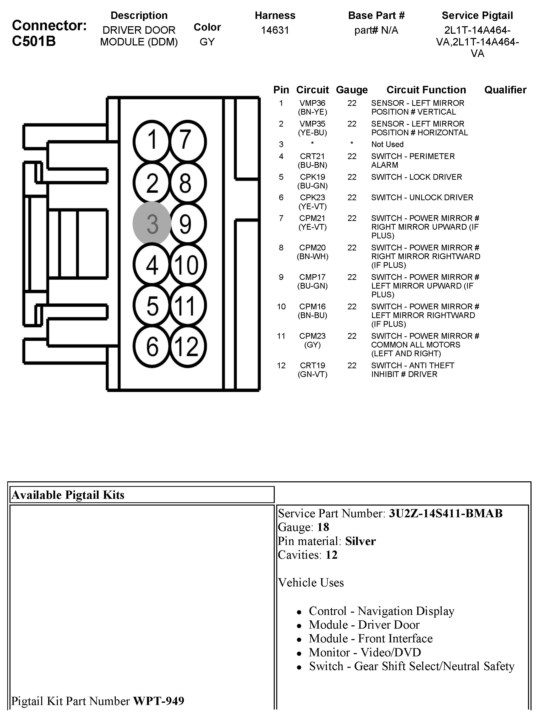 C501B Driver Door Module (DDM)