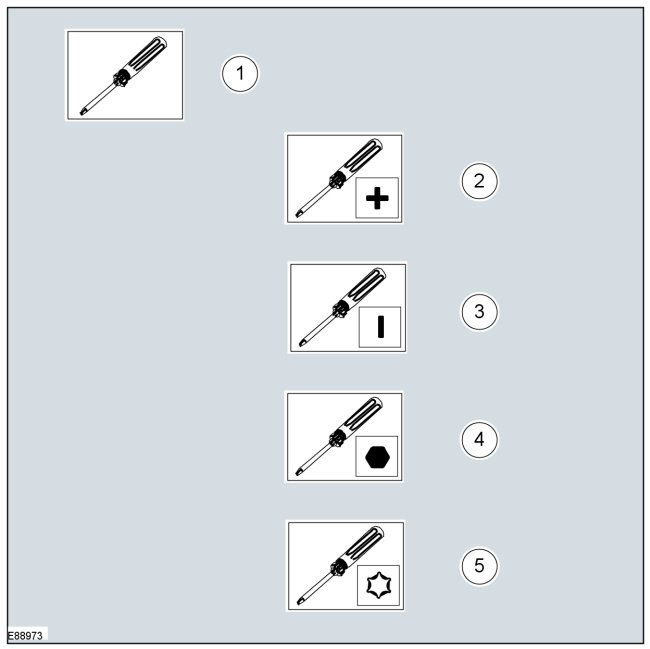 The screwdriver symbols are used to show which screwdriver bit is recommended to carry out a procedure step.