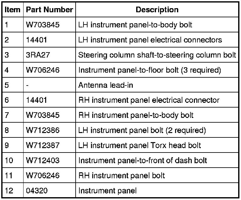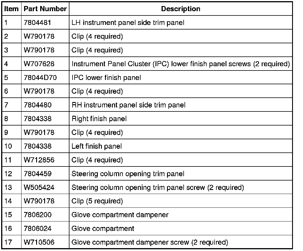 MKX Instrument Panel Fasteners