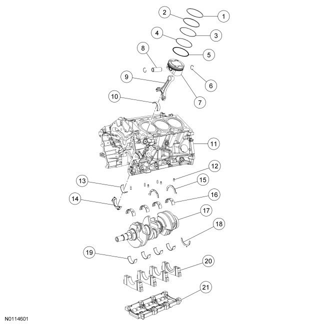 NOTE: Assembly of the engine requires various inspections/measurements of the engine components (engine block, crankshaft, connecting rods, pistons and piston rings). These inspections/measurements will aid in determining if the engine components will require replacement.
