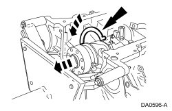 - Move the crankshaft to the front of the cylinder block. Note and record the crankshaft end play.