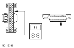 - Measure the resistance between the DLC (Data Link Connector) C251-6, circuit VDB04 (WH/BU), harness side and the DLC (Data Link Connector) C251-14, circuit VDB05 (WH), harness side.