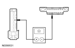 - Measure the resistance between the GPSM (Global Positioning System Module) C2398-6, circuit GD114 (BK/BU), harness side and ground.