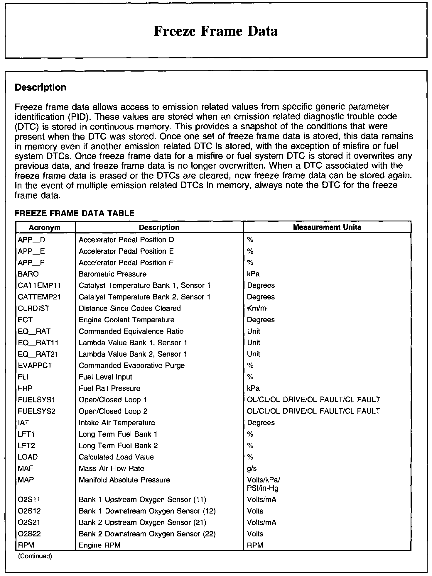 FREEZE FRAME DATA
