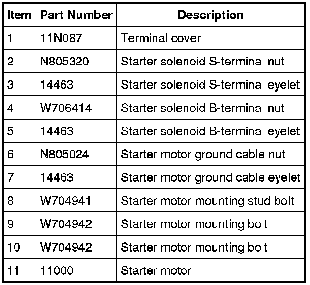 WARNING: Always disconnect the battery ground cable at the battery before disconnecting the starter motor battery terminal lead. If a tool is shorted at the starter motor battery terminal, the tool can quickly heat enough to cause a skin burn. Failure to follow this instruction may result in serious personal injury.