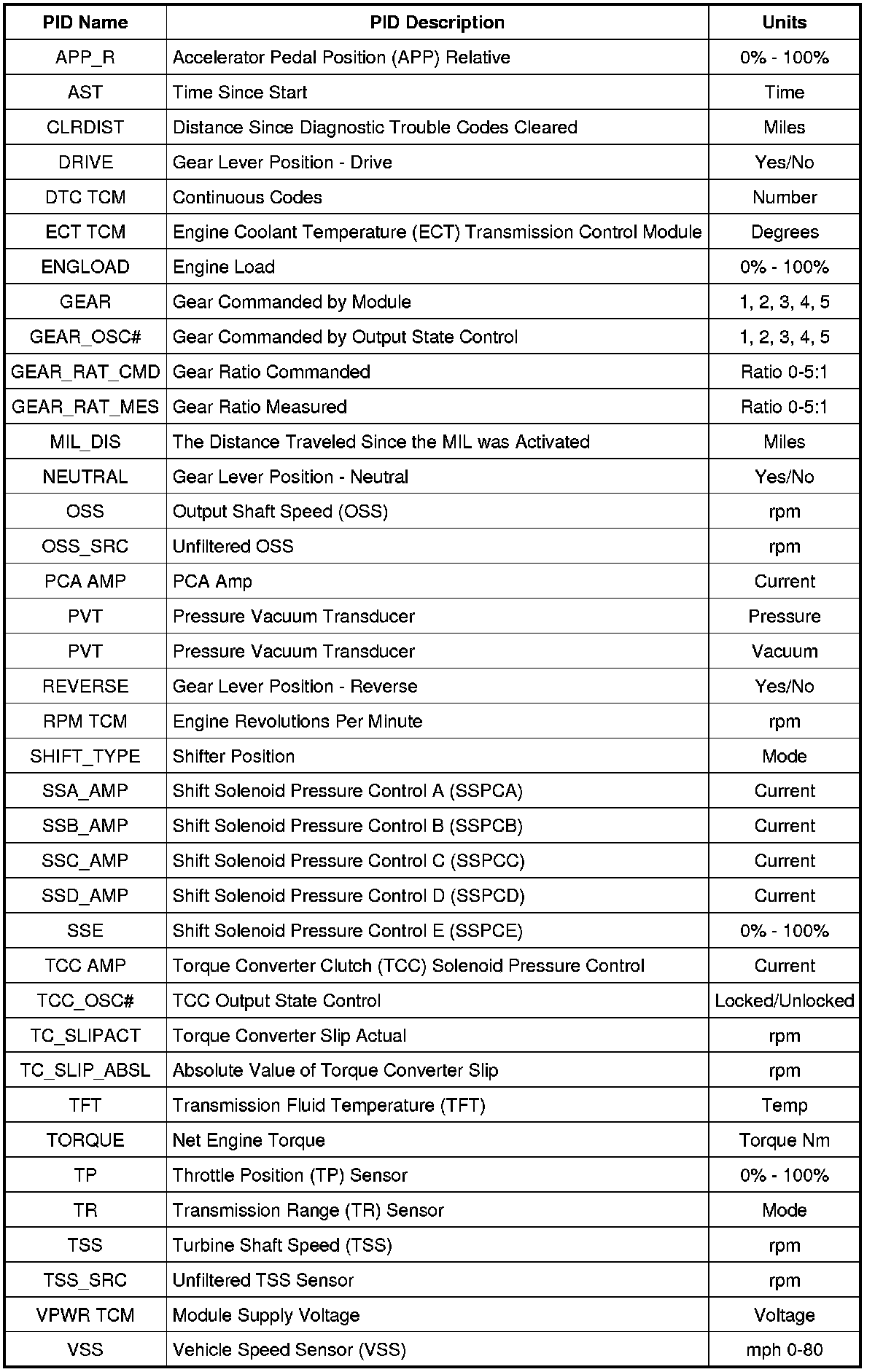 Diagnostic PID Chart