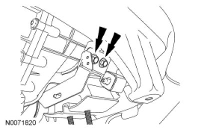 13. Install the RH exhaust heat shield bolt to the transmission crossmember.