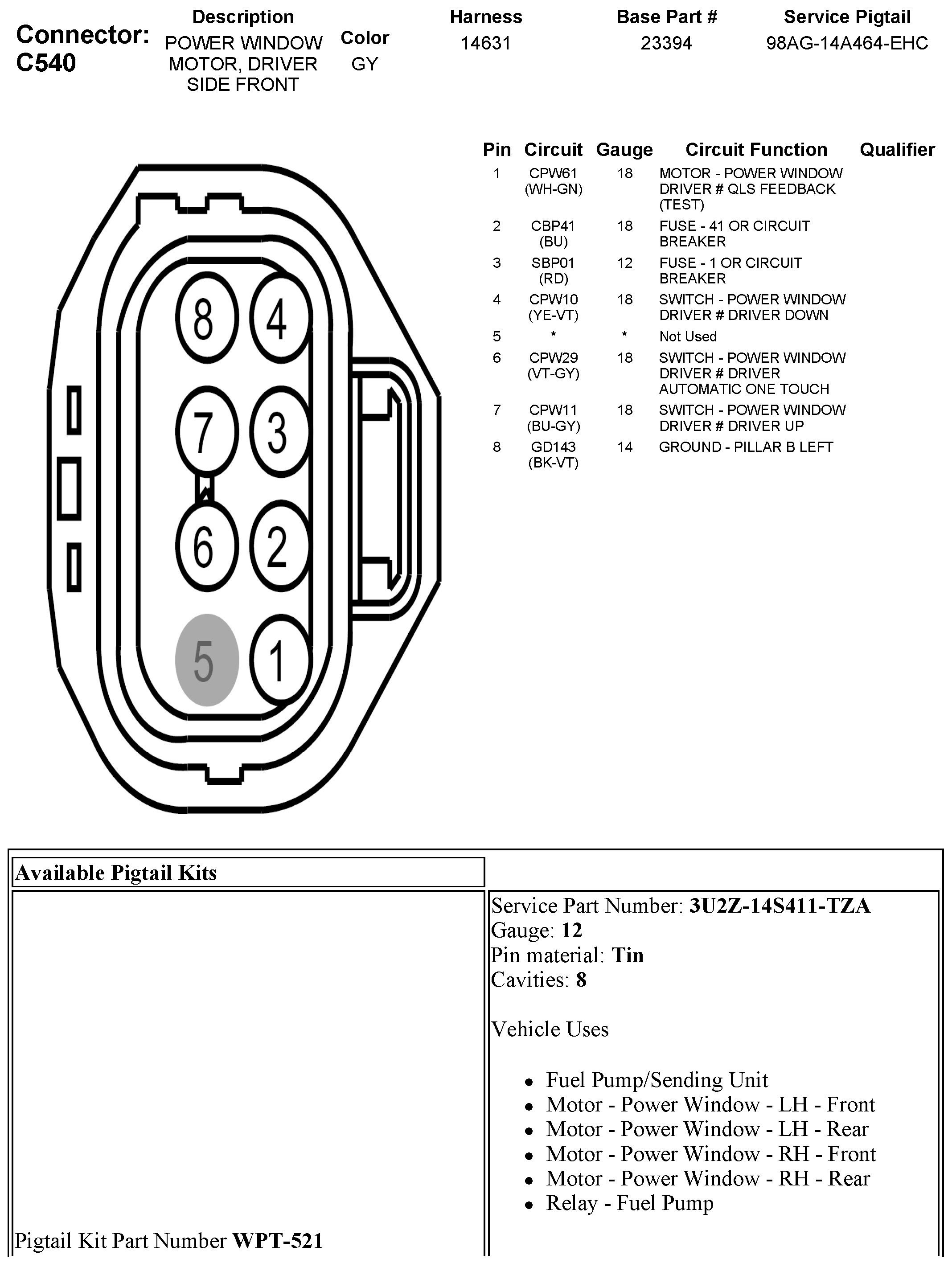 C540 Power Window Motor, Driver Side Front