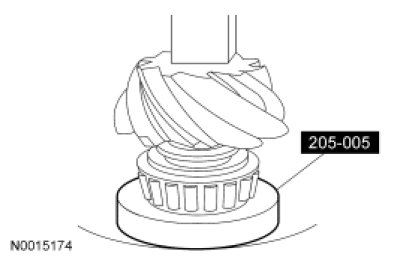 - Using a suitable press and the Drive Pinion Bearing Cone Installer, press the pinion bearing until it is firmly seated on the pinion gear.