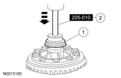 8. NOTICE: Press against the differential bearing inner cone only or damage to the component may occur.