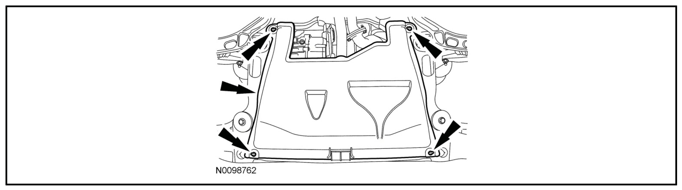 19. Position the RH engine splash shield and install the 2 lower pin-type retainers.