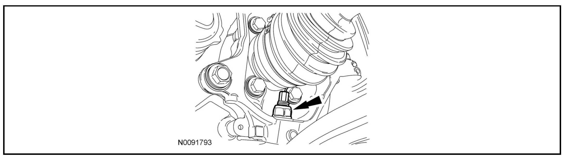 14. Remove the bolt and disconnect the 2 Electronic Power Assist Steering (EPAS) electrical connectors (1 shown) and the wiring retainer (not shown).