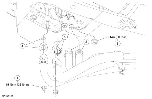 8. Remove the 2 auxiliary line floorpan bracket nuts.