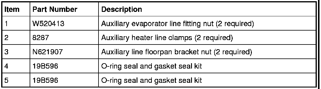 6. Remove the auxiliary evaporator line fitting nuts at the floorpan connection and disconnect the fittings.