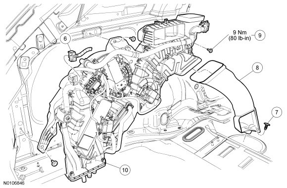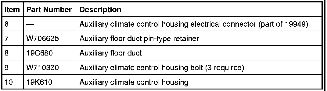 9. Disconnect the auxiliary climate control housing electrical connector.