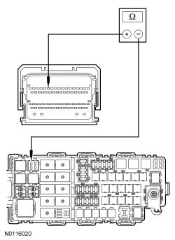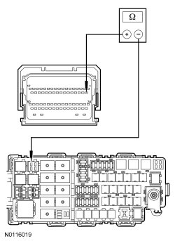 For 3.5L only, measure the resistance between A/C clutch relay socket, circuit CH302 (WH/BN) and PCM C175B-18, circuit CH302 (WH/BN), harness side.