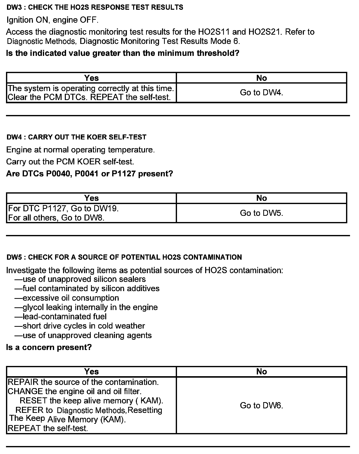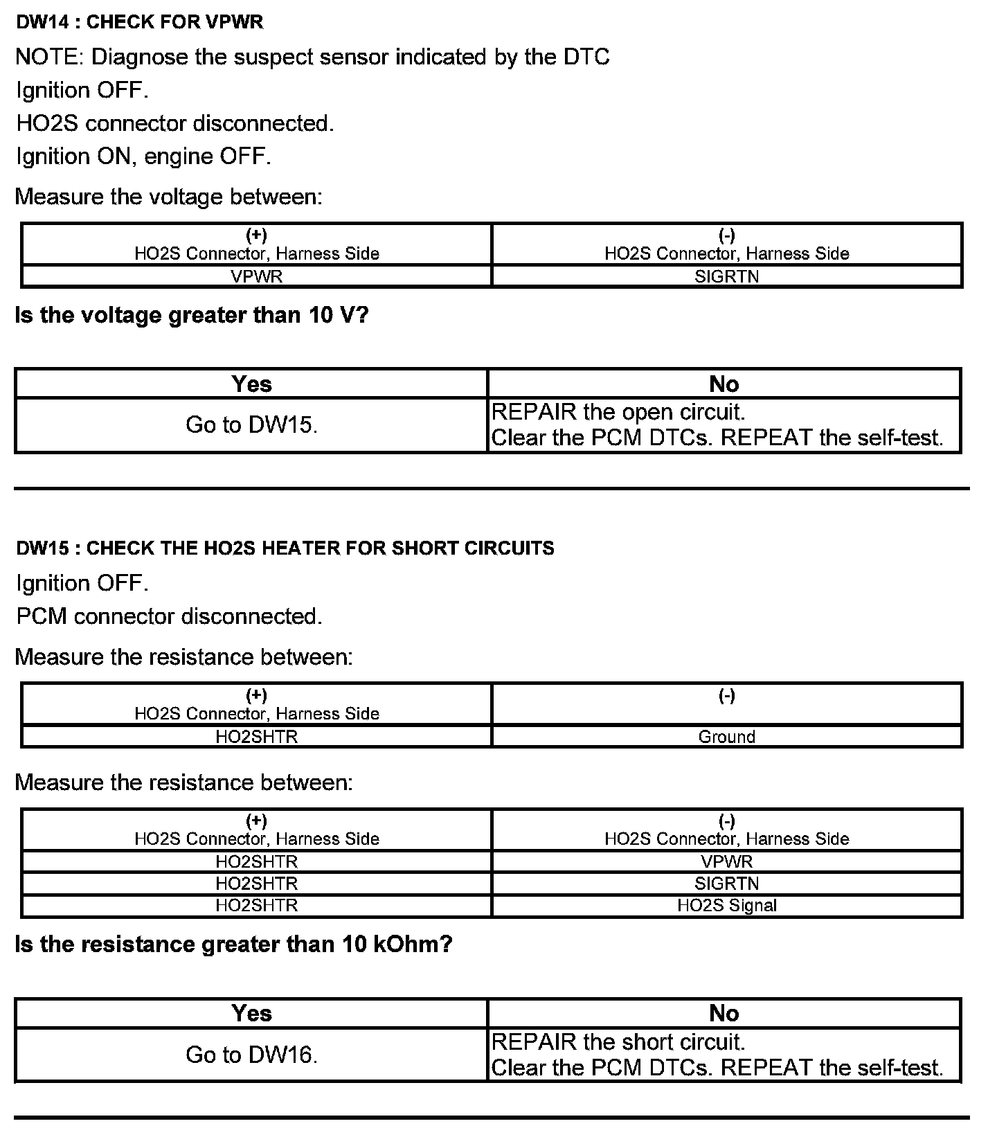 Test DW: Heated Oxygen Sensor (HO2S)