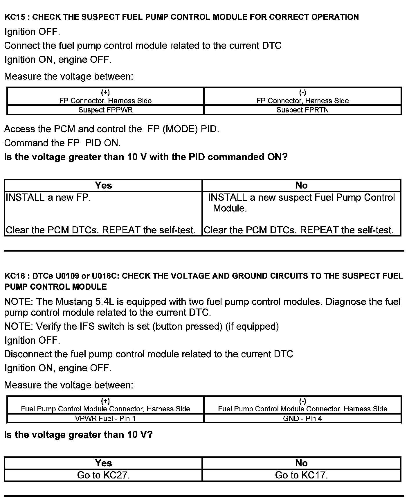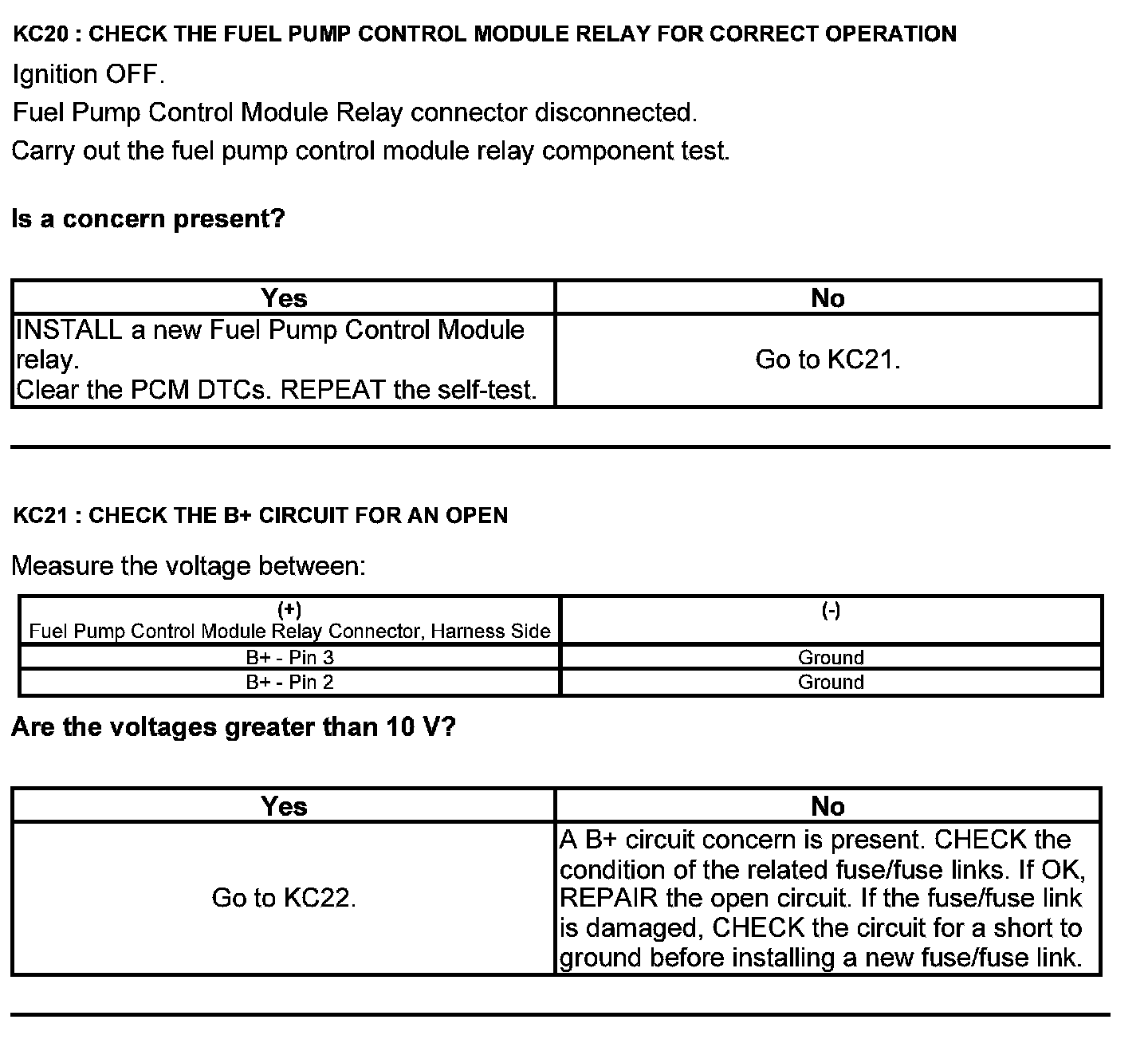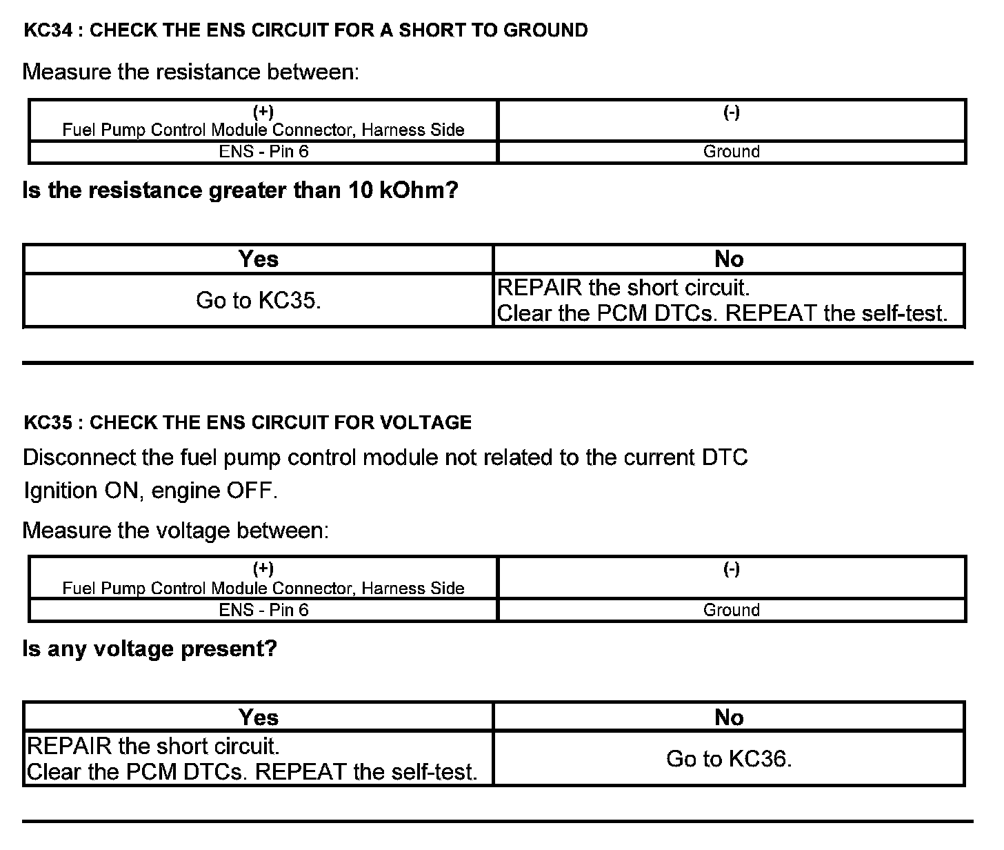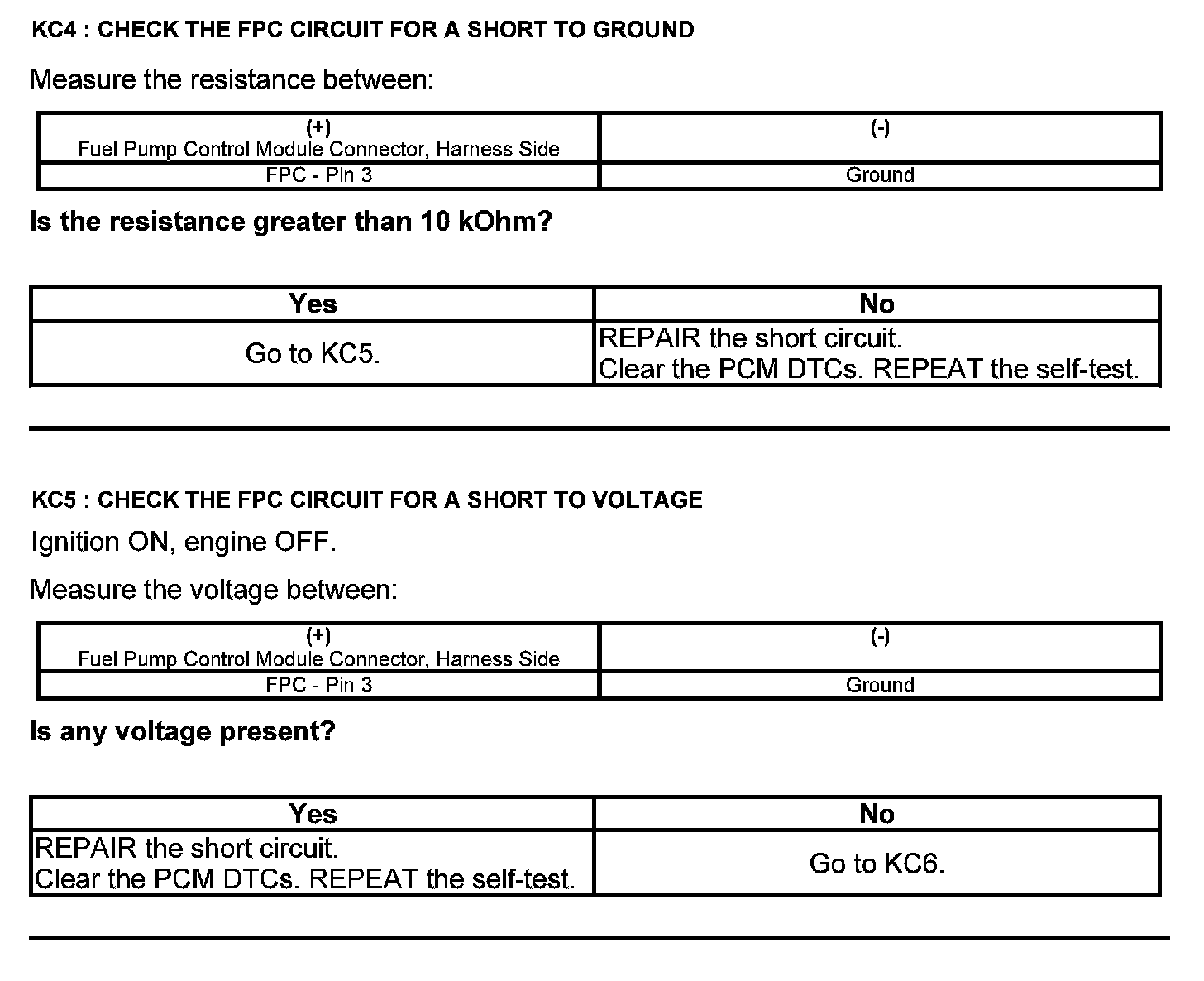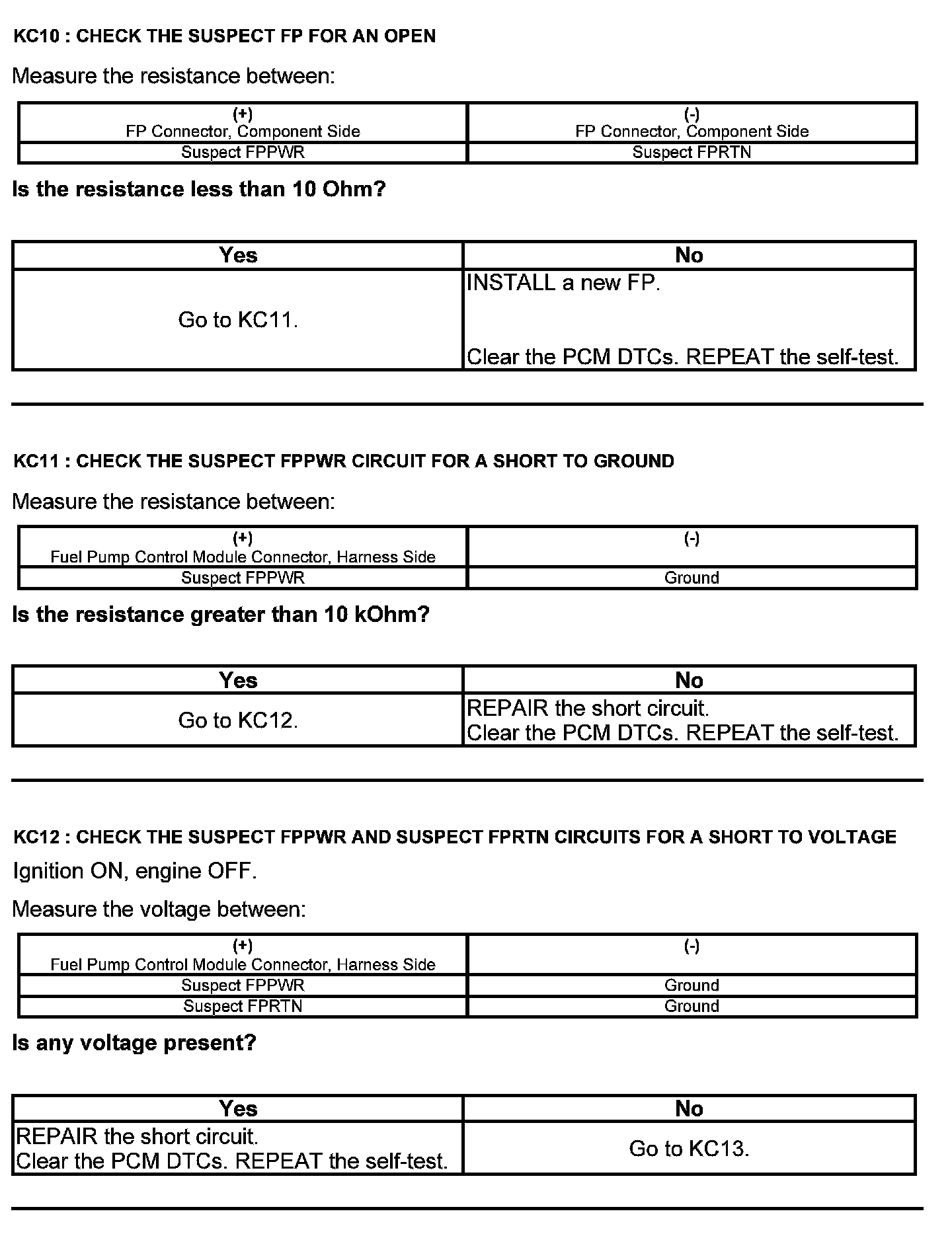 Test KC: Fuel Pump Control Module