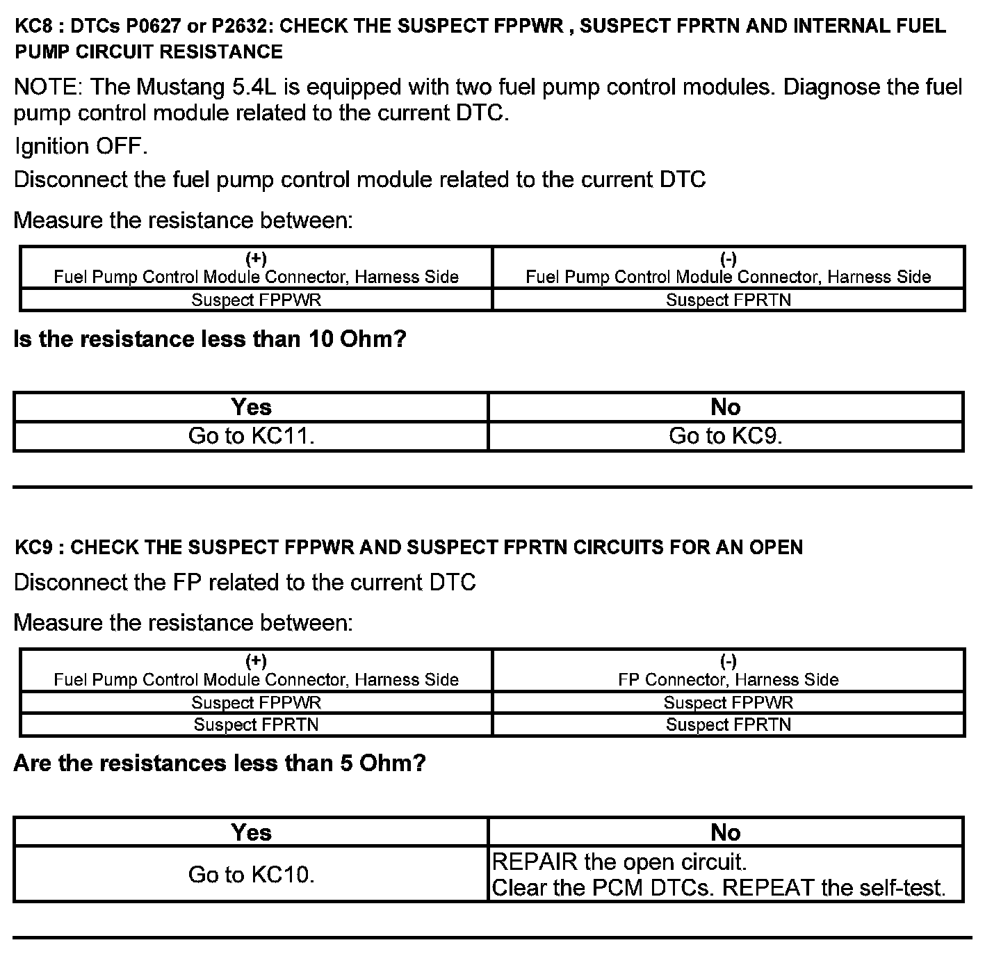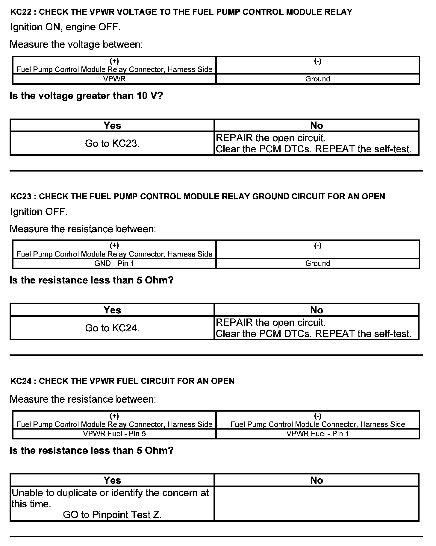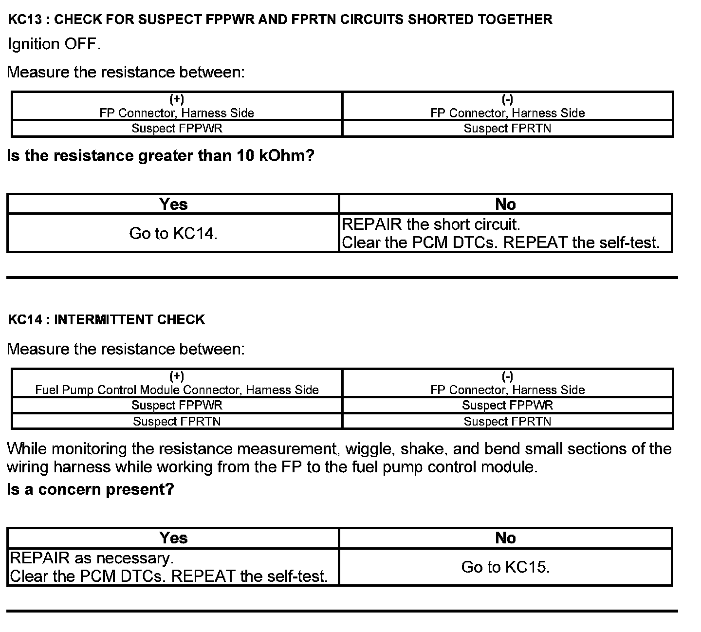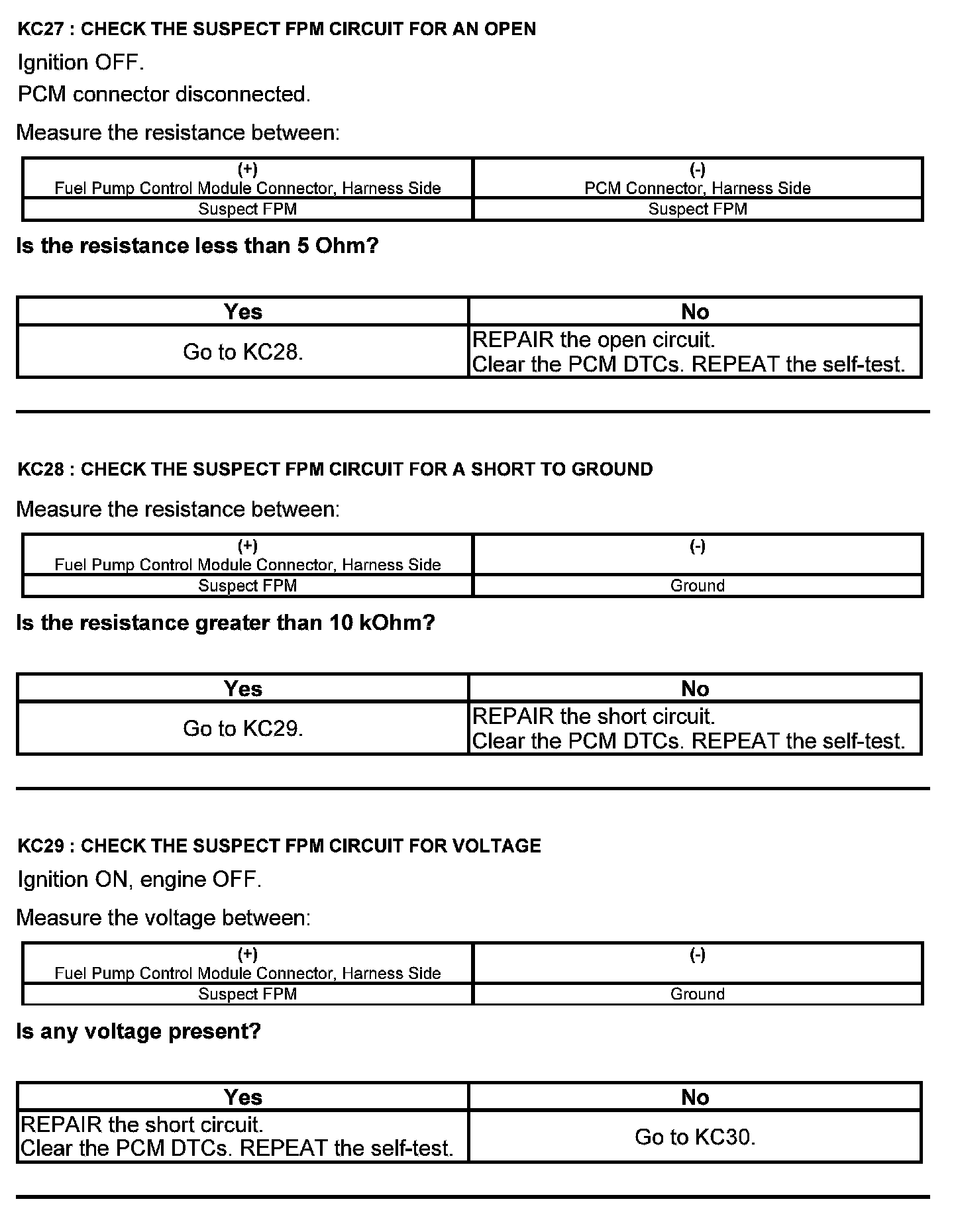 Test KC: Fuel Pump Control Module