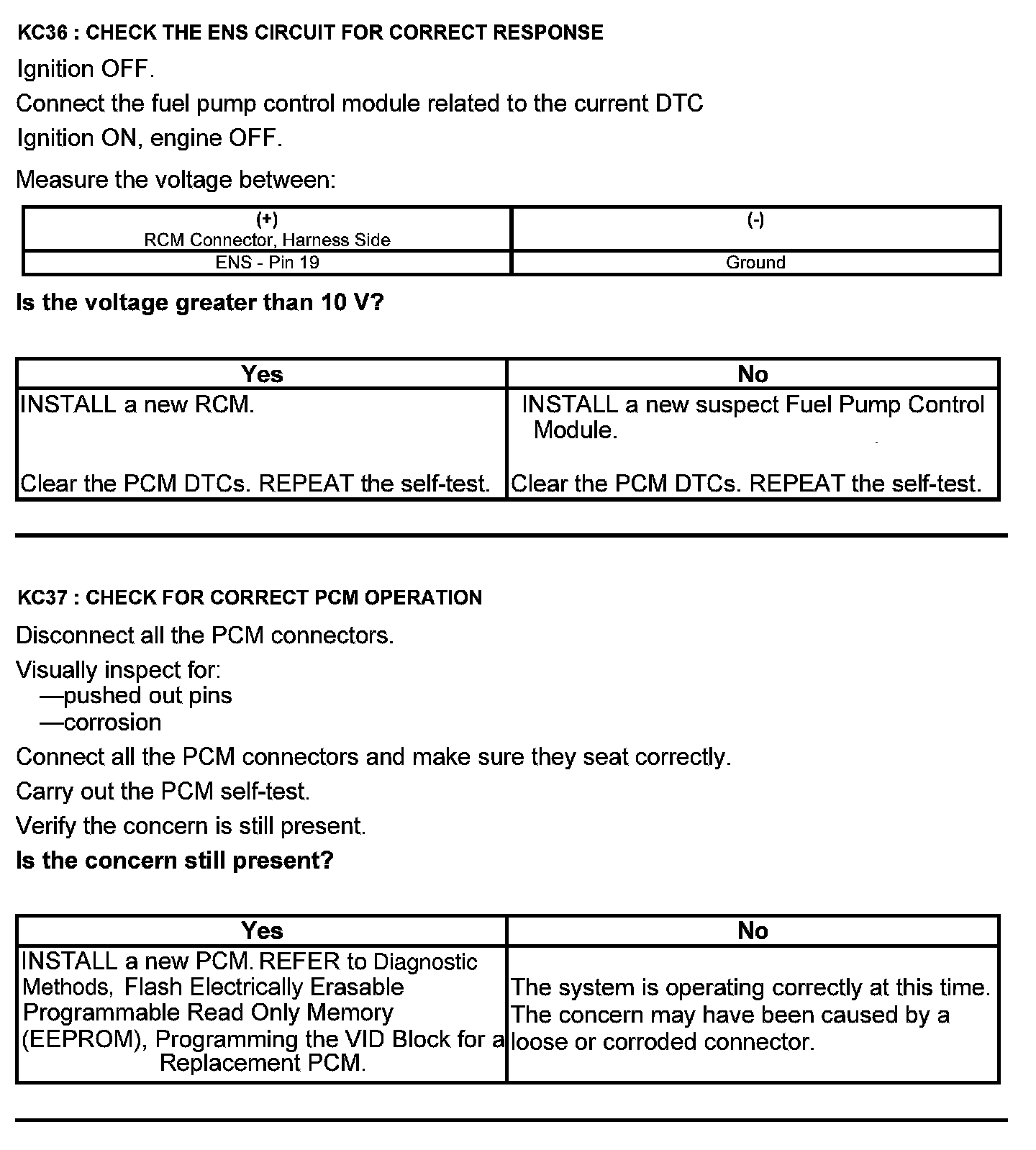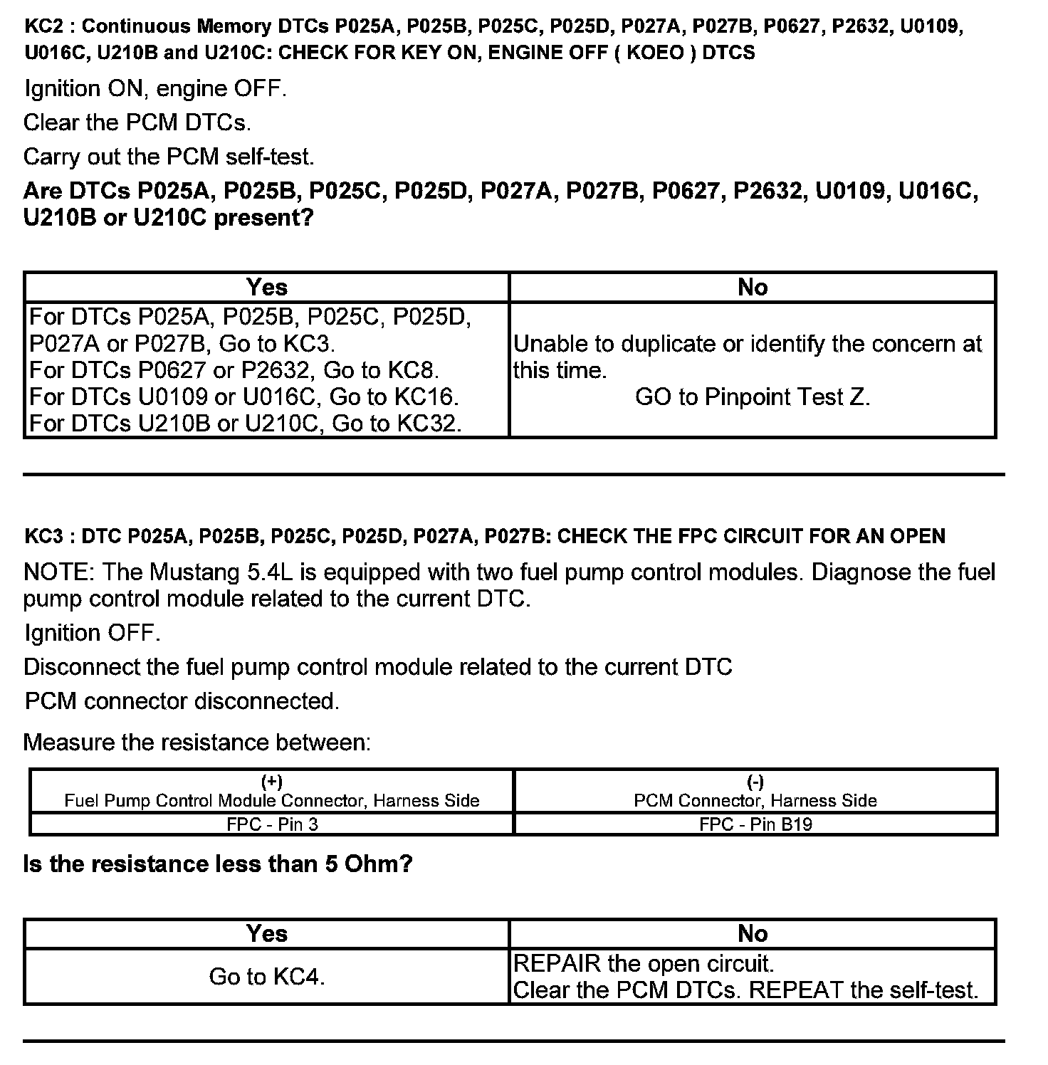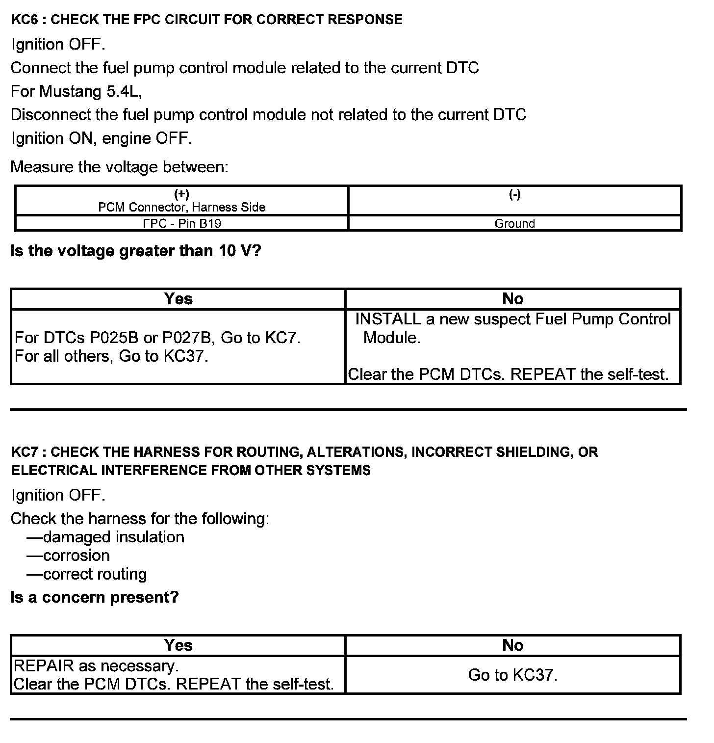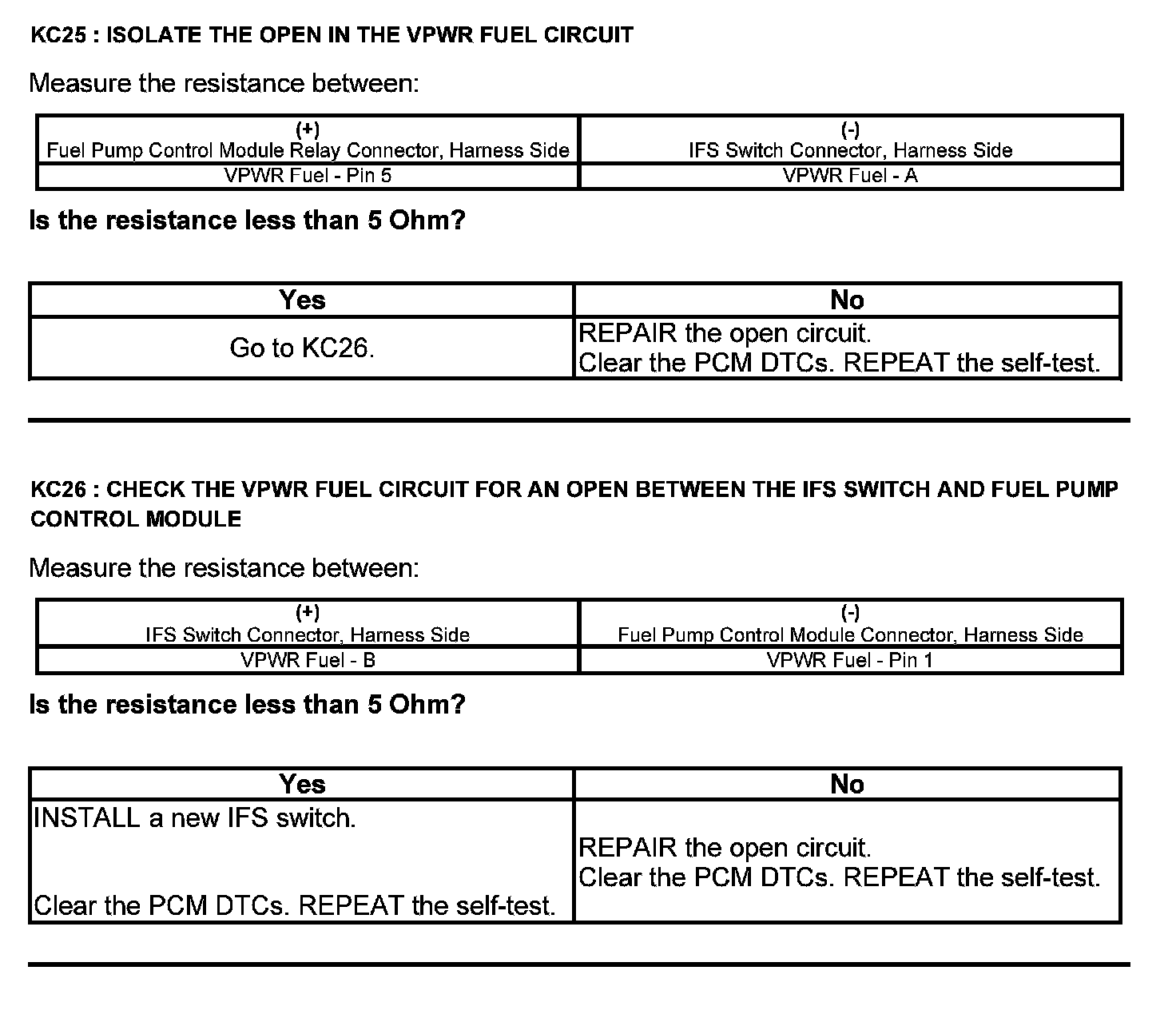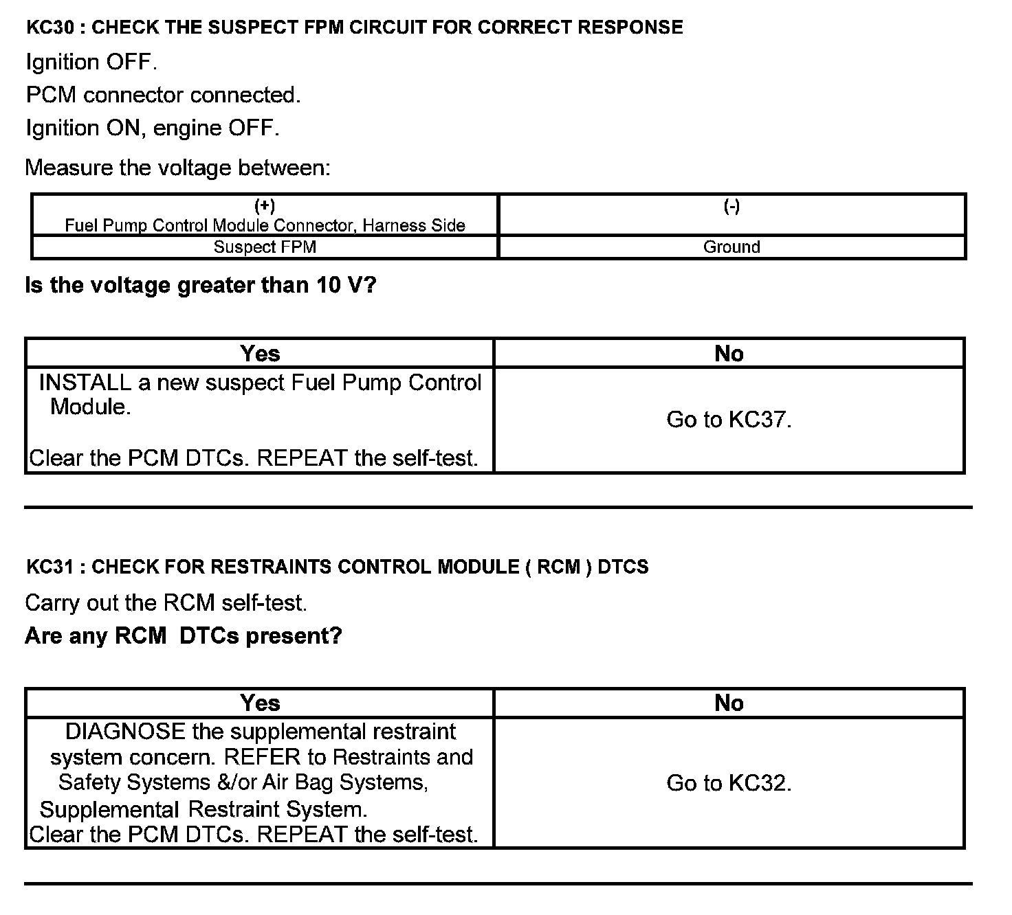 Test KC: Fuel Pump Control Module