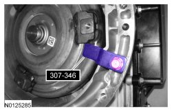 3. NOTICE: Only thread the bolts 6 to 8 turns or do not exceed 12 mm (0.472 in) into the torque converter. If the bolts are threaded too far, damage to the torque converter clutch surface can occur causing torque converter failure.