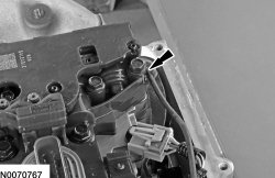 7. Slide the Transmission Range (TR) sensor electrical connector lock tab over to unlock the connector.