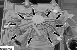 6. NOTICE: Do not use water-based cleaners or mineral spirits to clean or flush the torque converter or transaxle damage will occur.