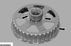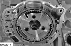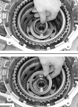 25. NOTE: The location of the tab on the bottom pressure plate is aligned with the gap for the low One-Way Clutch (OWC) snap ring.