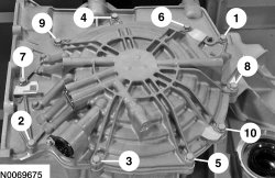 275. NOTICE: Be careful not to pinch the TSS (Turbine Shaft Speed), OSS (Output Shaft Speed) or TR (Transmission Range) sensor wiring harnesses under the valve body, or damage to the wiring harness or connectors may occur.